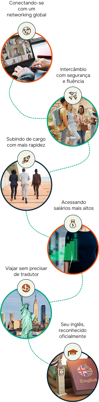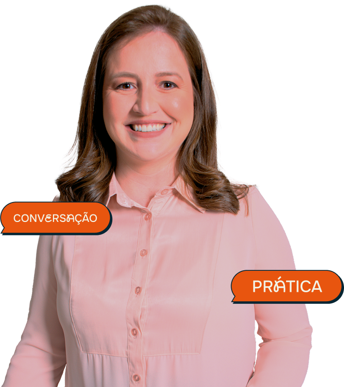 Aulas ao vivo, suporte direto da teacher e foco total na conversação.