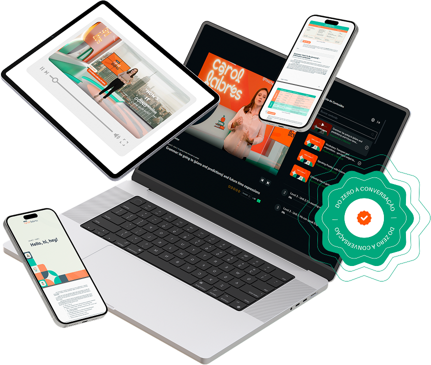 Esqueça aulas engessadas de gramática, aqui você pratica fala desde o primeiro dia.